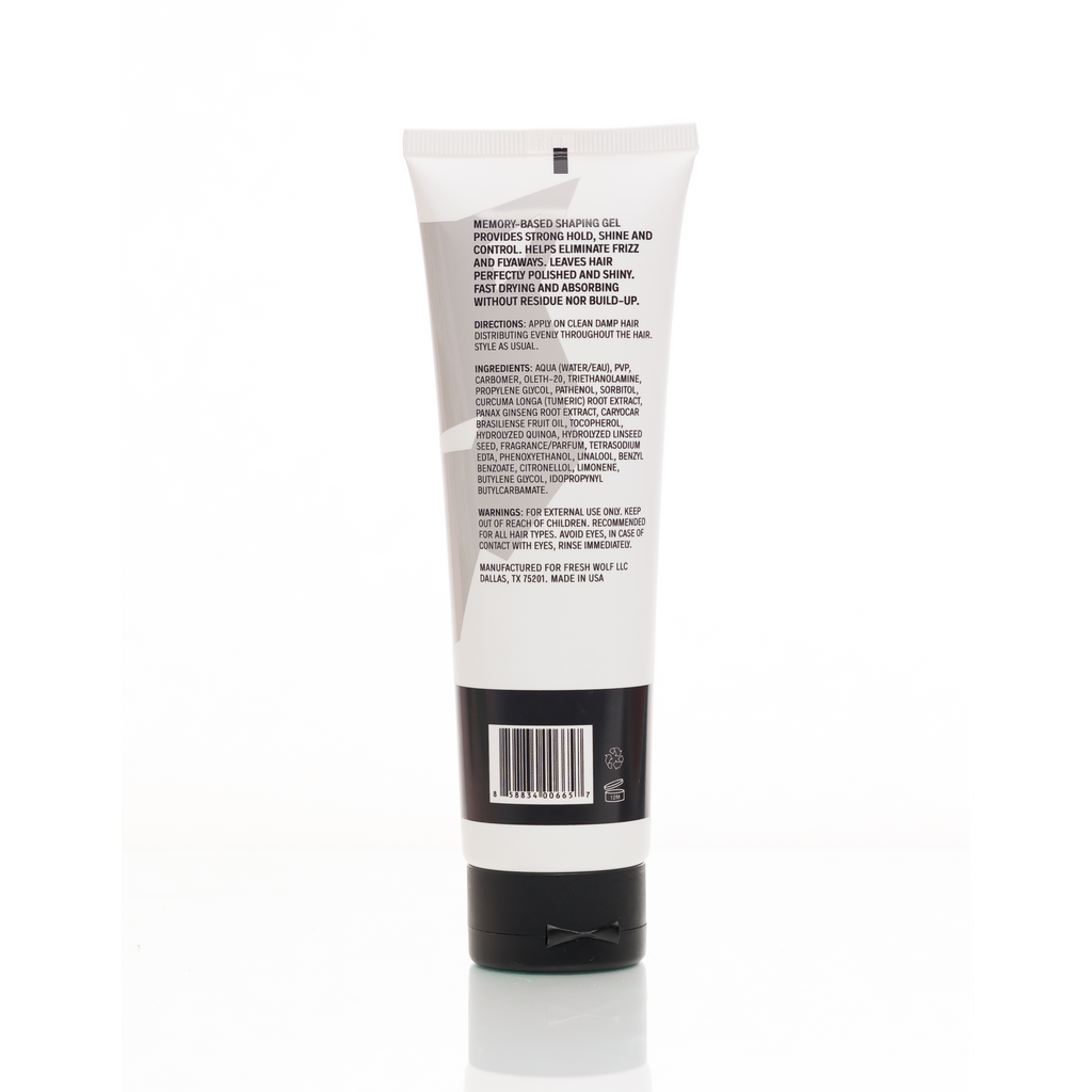 Memory-based shaping gel provides strong hold, shine and control. Helps eliminate frizz and flyaways. Leaves hair perfectly polished and shinny. Fast drying and absorbing without residue nor build-up.
